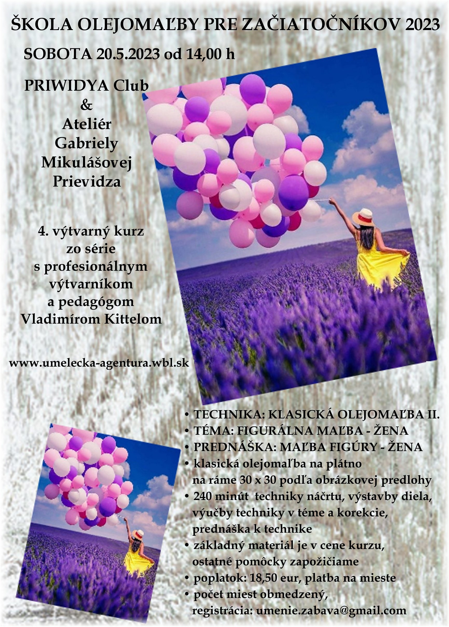 SOBOTA 20.5.2023 od 14,00 h - ŠKOLA OLEJOMAĽBY PRE ZAČIATOČNÍKOV 2023 s Musicum Ad Libitum & PRIWIDYA PROJECT séria výtvarných kurzov pre ZAČIATOČNÍKOV v PRIWIDYA Clube & Ateliéri Gabriely Mikulášovej v Prievidzi