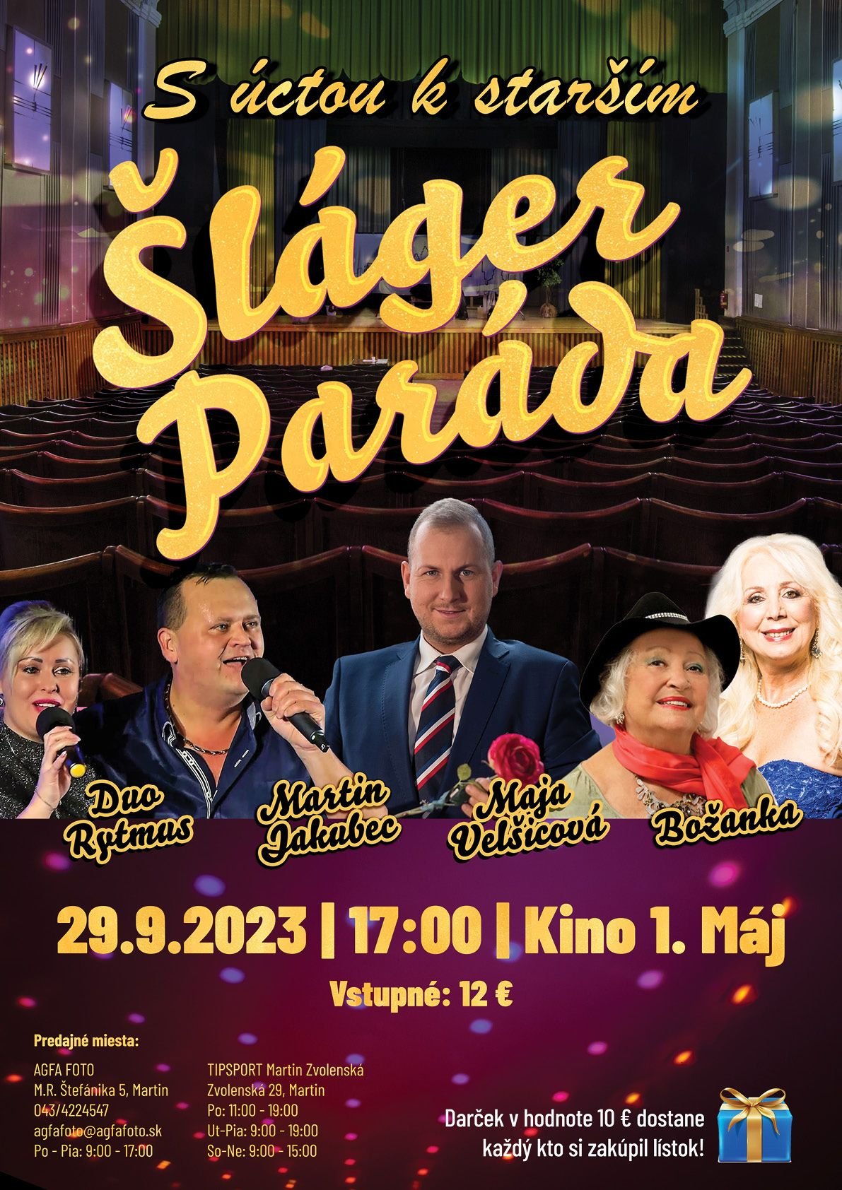 V predpredaji v sieti Ticketportal.Sk po zadaní slova "ŠLÁGER PARÁDA" a kúpiť