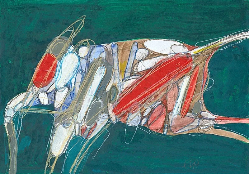 Kresba sa stáva základom obrazu, ktorý ďalej rozvíjame vrstvami farby, prekresľovaním, zakrývaním aj narúšaním pôvodného gesta.