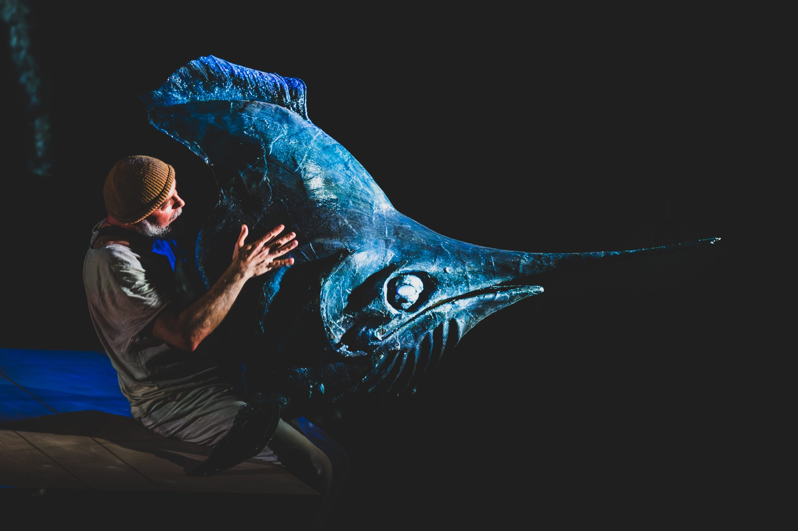 Prerozprávanie silného príbehu Hemingwaya o iniciácii chlapca, muža a starca prostredníctvom skúšok a zápasu s prírodou. Veľkú úlohu tu zohrávajú vlastnosti a skúsenosti, ktoré v dnešnom civilizovanom svete uplatníme len vzácne, o to viac nás fascinujú v literárnom a umeleckom stvárnení, lebo predstavujú tajomstvo. Tieto starosvetské cnosti súvisia so schopnosťou prežiť a s odhodlanosťou nevzdať sa cieľa a vyplývajú z hlbokej znalosti prírody a života. Pevná vôľa a húževnatosť, samota a samostatnosť, vytrvalosť a nezlomnosť, inteligencia a chytrosť, ale aj istá pýcha a istá pokora – to sú akoby vzorové vlastnosti, ktoré prechádzajú v modernom svete veľkou transformáciou, a dnes si ich najčastejšie spájame so športom a hrou. Sú však vždy nedeliteľnou súčasťou každého individuálneho zápasu s tým, čo nás prekonáva a poráža. V našej inscenácii sa zamyslíme nad pôvodným obsahom týchto vlastností a nad ich miestom v iniciácii človeka k ľudskosti. Chlapec a starec, ryba a more predstavujú základné prvky nášho ludusu o dospievaní a zavŕšení skúsenosti života.
