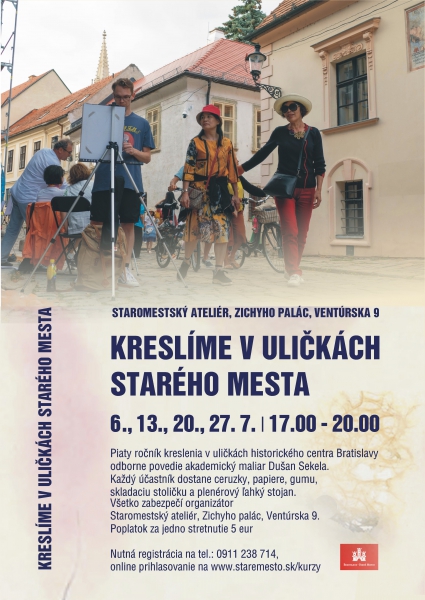 Piaty ročník kreslenia v uličkách historického centra Bratislavy odborne povedie akademický maliar Dušan Sekela. Každý účastník dostane ceruzky, papiere, gumu, skladaciu stoličku a plenérový ľahký stojan.