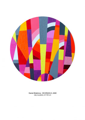 DO KRUHU, Daniel BidelnicaAutor sa prezentuje najnovšími dielami, ktoré všetky vznikli v poslednom období. Sú to obrazy v kruhových formátoch a objekty, ktoré charakterizujú Bidelnicové snahy o vyjadrenie pocitu prítomnosti. V obrazoch sa prezentuje snahou o harmóniu formy, farby a idei. Jeho reč je abstraktná, kontrastná, ale v konečnom dôsledku pôsobí harmonicky. Kurátorka PhDr. Dagmar Kudolaniy - Srnenská Ph.D, otvorená utorok - nedeľa 13.00 - 18.00, trvanie 1. 7. - 30. 7., Staromestská galéria Zichy, Ventúrska 9.