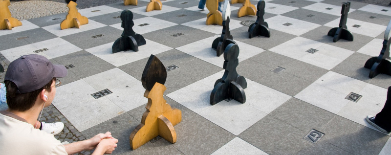 Šachovnica v dlažbe na Hviezdoslavovom námestí pri altánku,