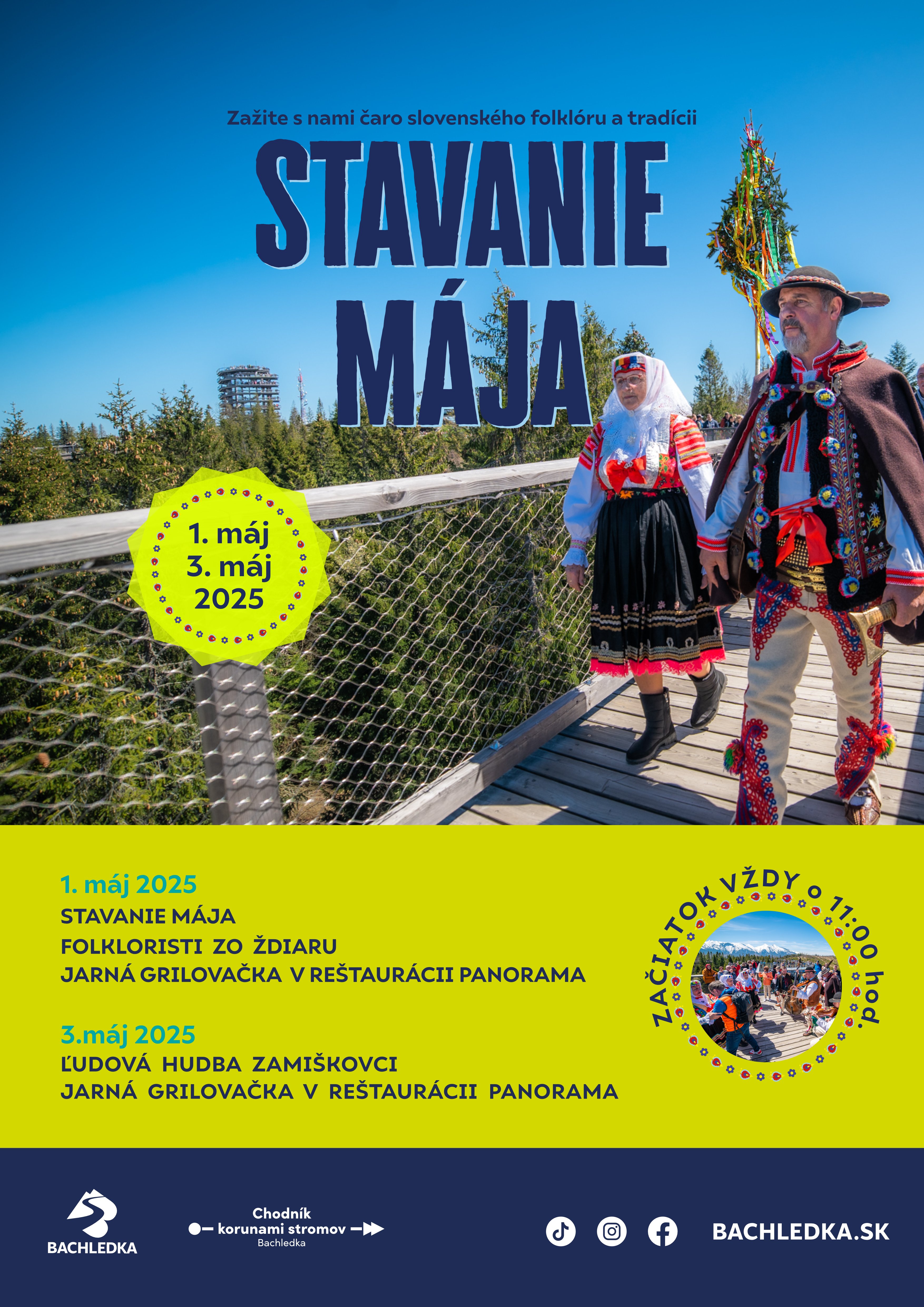 Pokračujeme aj v sobotu 3. mája, kedy sa stredisko rozozvučí tónmi Ľudovej hudby Zamiškovci. K tomu si vychutnáte lahodné grilované špeciality a výnimočný výhľad z Chodníka korunami stromov na panorámu Belianskych Tatier.