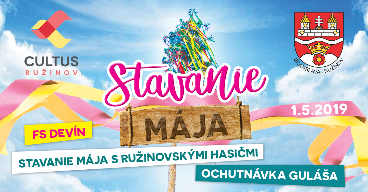 Mestská časť Bratislava-Ružinov a Cultus Ružinov pripravili na 1. mája 2019 pre všetkých Ružinovčanov tradičné stavanie mája priamo v ich mestskej štvrti. Stavanie mája s Ružinovskými hasičmi budú sprevádzať dievčatá z FS Devín. Pre všetkých bude pripravená ochutnávka guláša.