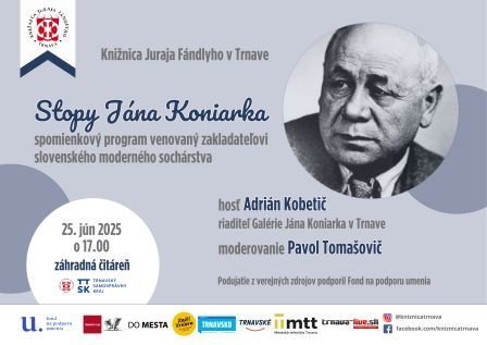 K významným kultúrnym inštitúciám Trnavy patrí galéria, ktorá nesie meno významného umelca, jedného zo zakladateľov moderného sochárstva na Slovensku - Jána Koniarka. Riaditeľ galérie Adrián Kobetič príde do záhradnej čitárne porozprávať o tvorbe tohto rodáka z Voderád, ktorý pôsobil v Trnave a zanechal tu množstvo umeleckých diel. Priamo v knižničnej záhrade je umiestnená kópia jeho diela Dievčatko pod sprchou, ktorú odlial Ladislav Sabo z Galanty.