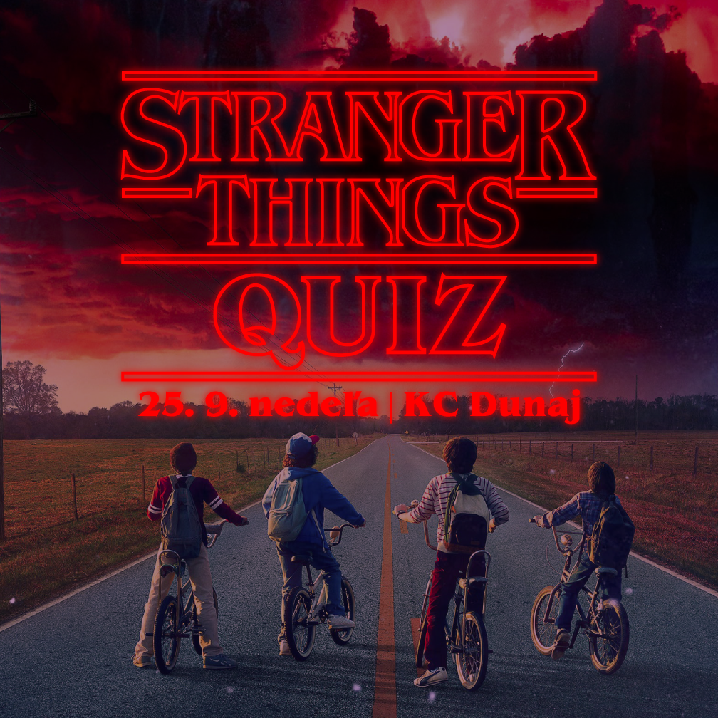 Je tvoja zvedavosť silnejšia než strach z nadprirodzených vecí? Fičíš si na filmoch, videohrách a hudbe zo 70. a 80. rokov tak sebavedome, že dokážeš rozlúštiť každú narážku bratov Dufferovcov? Sú tvoje seriálové vedomosti silnejšie ako Elina telekinéza? Dokážete sa s kamarátmi spojiť v boji so zlom tak, ako naša partička z mesta Hawkins? Tak potom neváhaj a vstúp do našej kvízovej dimenzie! Večerom bude sprevádzať Miro Neumann.