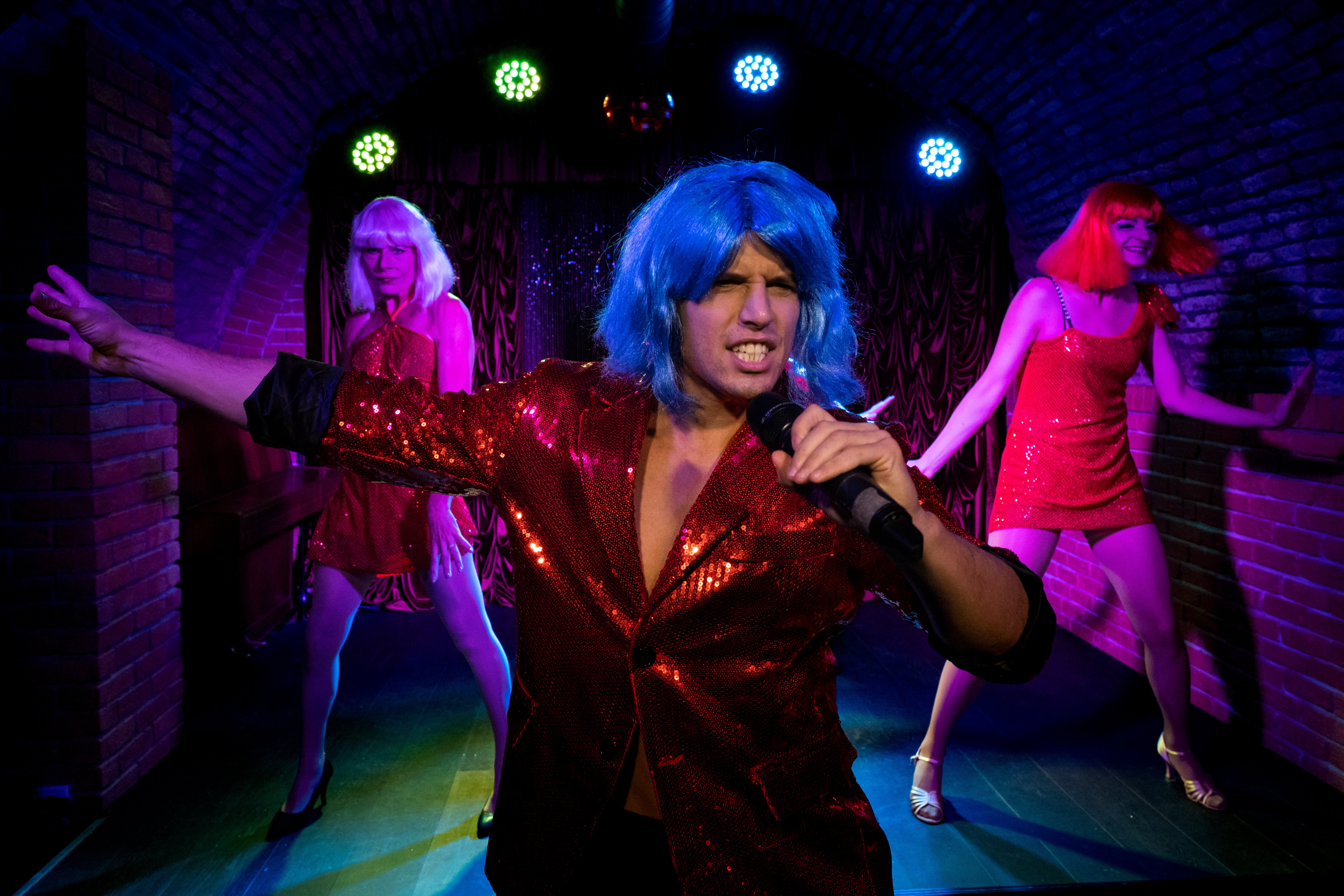 A wicked boogie woogie party show inspired by the greatest 70´s hits and the famous Studio 54 in New York. A live jukebox with a playlist of 34 songs. Funny choreos, bizzare outfits. A deadly entertaining interactive night! Your choice – your show!