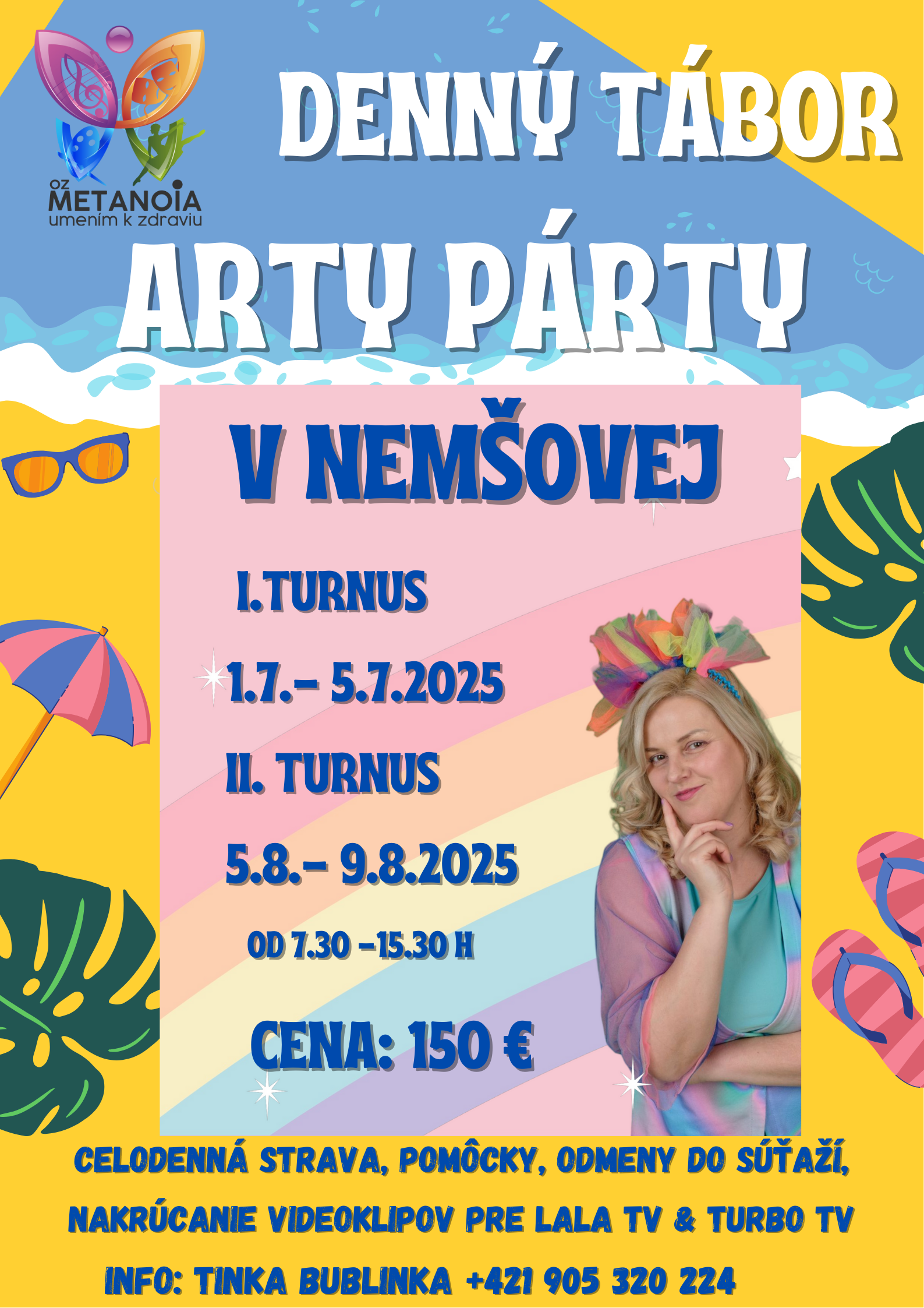 🎉🥁🪇NEMŠOVÁ a okolie 🎉 prihlasovanie na letné tábory ARTY PÁRTY 2025 je spustené....vyvrcholením umeleckej zábavy bude nakrúcanie 2 videoklipov 🎬🎥🎞 pre