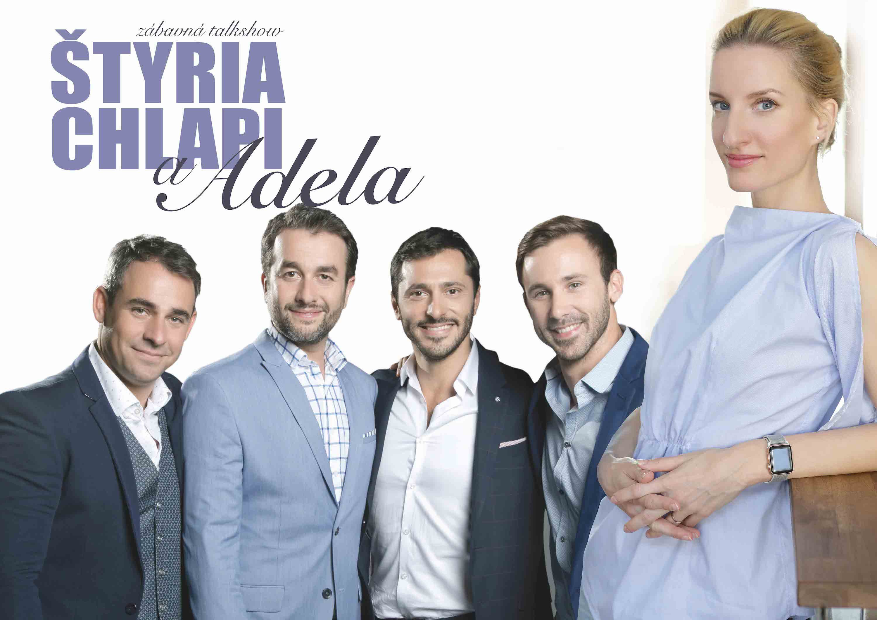 Zábavná talkshow "ŠTYRIA CHLAPI A ADELA" je stretnutie známej štvorice a jednej zvedavej ženy. Na prvý pohľad si možno myslíte, že ich poznáte. Na druhý zistíte, že o nich viete málo. Na tretí začnú zisťovať novinky o sebe navzájom. Uvoľnené rozprávanie nie len o spoločnej práci, nie len o tom aké to je byť otcom, ale aj o príjemných nezmysloch. Čokoľvek, čo sa neopýta Adela, sa v závere opýta divák, ktorý je kľúčovou súčasťou celej zostavy.