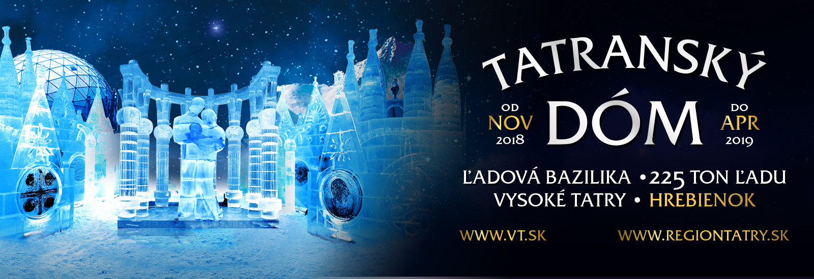 Prežite krásny zimný čas v Tatrách a odneste si nezabudnuteľný zážitok z Tatranského ľadového dómu na Hrebienku, ktorý sa tento rok ponesie v téme Baziliky Sv. Petra v Ríme spolu s Berniniho kolonádou.