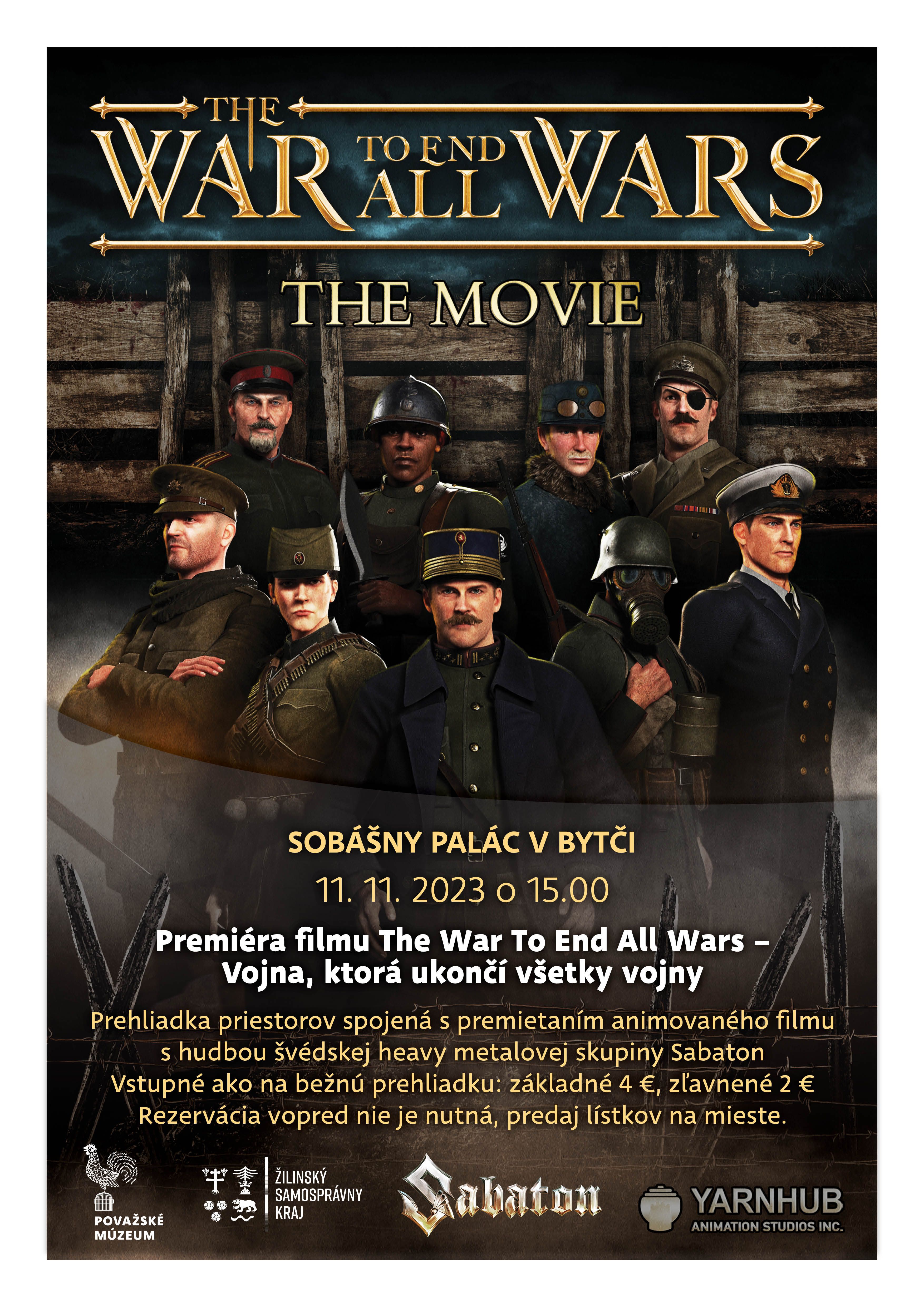 Považské múzeum sa zapojilo do celosvetového projektu „History Rocks“ a pri príležitosti 105. výročia ukončenia prvej svetovej vojny bude 11. 11. o 15.00 v sále Sobášneho paláca v Bytči premietať film „The War To End All Wars – The Movie“ so slovenskými titulkami. „Naše múzeum je jedno z troch múzeí na Slovensku, ktoré sa do tohto projektu zapojilo. Film v slovenskom preklade s názvom Vojna, ktorý ukončí všetky vojny prináša nezvyčajné spojenie histórie a menšinového žánru hudby, ktorý chce poukázať na hrôzy vojny aktuálne aj dnes,“ priblížil riaditeľ Považského múzea Michal Jurecký.