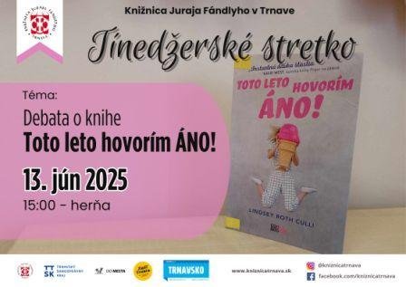 Teší nás pravidelné stretávanie mladých priateľov literatúry. Piatkové stretnutie a debata bude o knihe Toto leto hovorím ÁNO! Knihovník Ľubko si už chystá otázky...