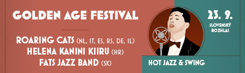 V septembri sa Bratislava už po deviaty raz pomyselne premiestni v čase o 100 rokov do minulosti. Do atmosféry medzivojnového života 20. až 40. rokov minulého storočia, kedy aj Bratislavou znel hot-jazz a swing, sa presunieme v sobotu 23. septembra 2023 vo Veľkom koncertom štúdiu Slovenského rozhlasu, kde sa uskutoční 9. ročník medzinárodného festivalu autentického tradičného jazzu a swingu Golden Age Festival.