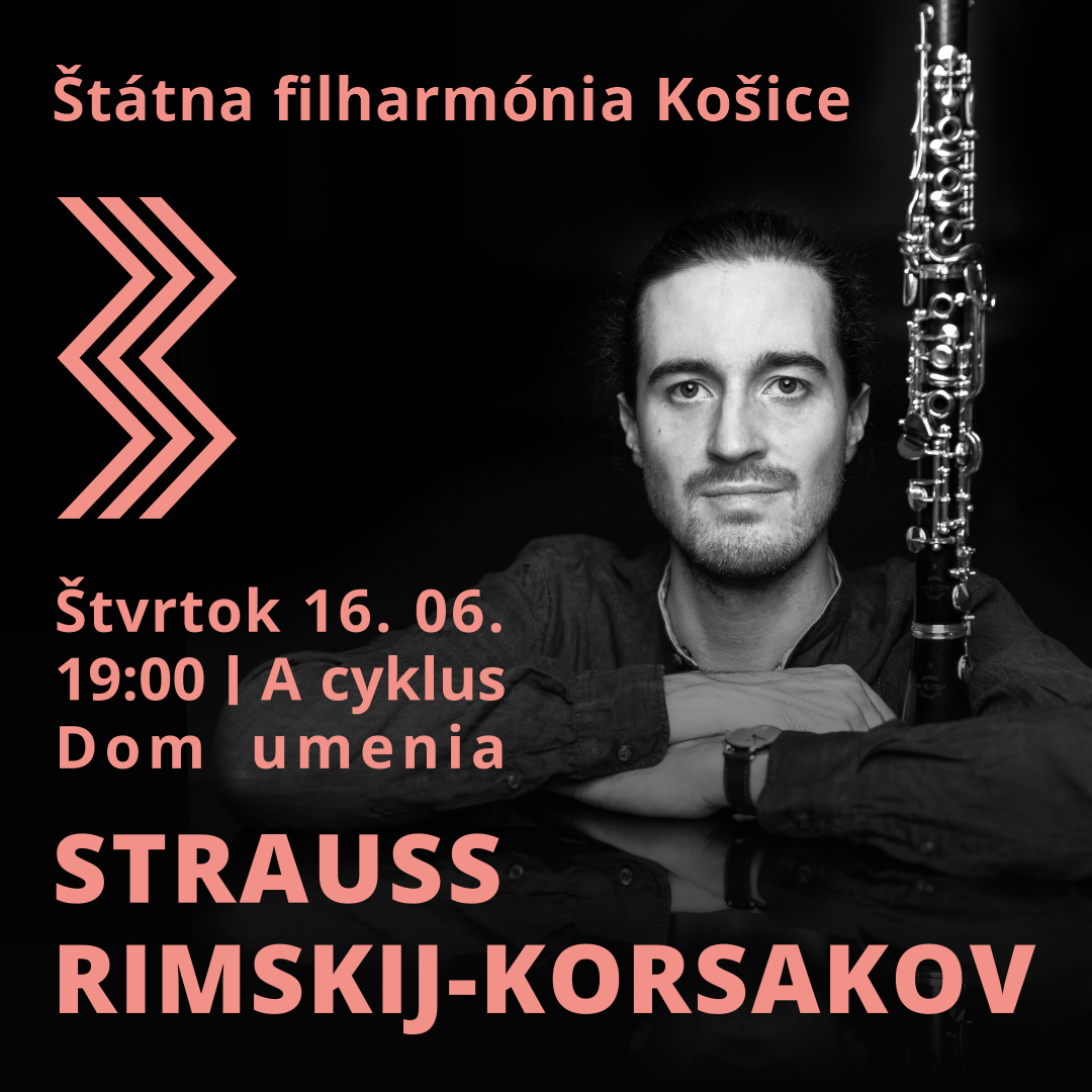 Pod vedením šéfdirigenta ŠFK Roberta Jindru sa v Košiciach predstavia dvaja úspešní sólisti – jeden z najuznávanejších českých fagotistov mladej generácie Jan Hudeček a prvý klarinetista Essenskej filharmónie Johannes Schittler. V sprievode orchestra Štátnej filharmónie Košice uvedú Straussove Duet-Concertino pre klarinet a fagot. V druhej časti večera odznie Symfónia č. 2 “Antar” Nikolaja Rimského-Korsakova. Abonentný koncert A cyklu s názvom STRAUSS – RIMSKIJ-KORSAKOV sa uskutoční vo štvrtok 16. júna o 19:00 v Dome umenia, v spolupráci so Slovenskou akadémiou vied. ŠFK pozýva návštevníkov aj na predkoncertné stretnutie, ktoré prebehne v Malej sále o 18:00 s Petrom Katinom. Lektor dramaturgie svojím rozprávaním zasvätí poslucháčov do programu koncertu a tiež vyspovedá účinkujúcich umelcov.