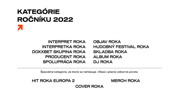 Čo sa týka ďalších zmien, nastane aj v oznámení víťazov v jednotlivých kategóriách. Minulý rok prebehlo vyhlasovanie víťazov 9.ročníka Ruka Hore Awards na kreatívnom evente, ktorý u nás neurobil zatiaľ nikto. Výsledky sa prítomní hostia dozvedeli prostredníctvom koncertu swingovej kapely Funny Fellows v špeciálnej umeleckej inštalácii od uznávaného fotografa, režiséra a umelca Lousy Aubera. A rok predtým si zasa organizátori počas lockdownu pripravili prvý GalaStream, na ktorom sa však pochopiteľne kvôli pandemickým opatreniam nemohla zúčastniť verejnosť. Tento 10.ročník však slávnostne vyhlásenie prebehne v éteri rádia Europa 2 a to už 22.marca. Okrem iného si jedno z najpočúvanejších rádií na Slovensku pripravilo vlastnú kategóriu “HIT ROKA RÁDIA EUROPA 2” , za ktorú sa nebude hlasovať, ale je v špeciálnej sekcii medzi kategóriami “Merch roka” a “Cover roka”, kde o víťazovi rozhodne odborná porota.