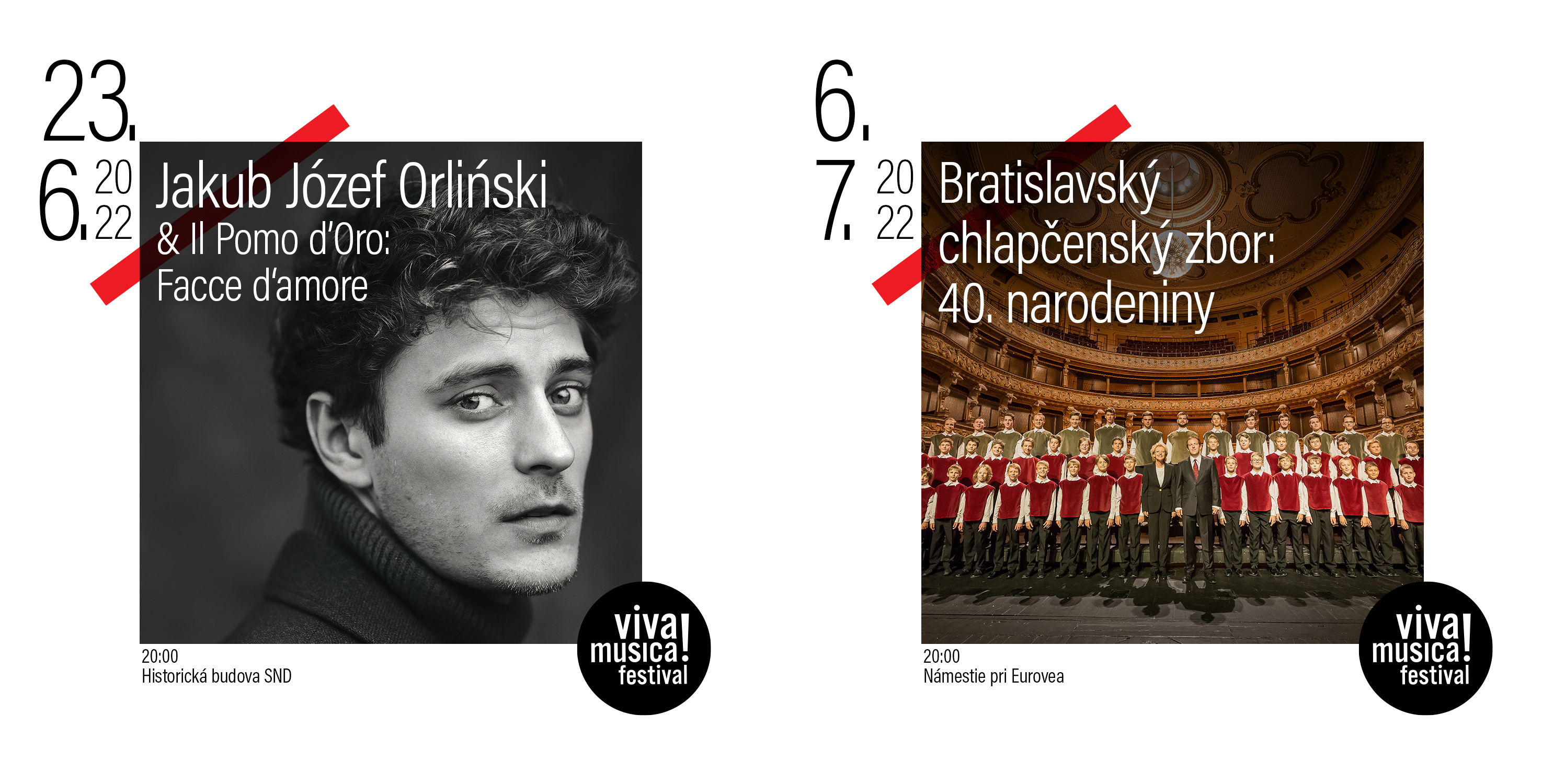 Viva Musica! festival začína o necelé dva mesiace a potrvá až do začiatku septembra. Otvárací koncert 23. júna 2022 bude patriť poľskému kontratenoristovi Jakubovi Józefovi Orlińskemu, ktorý zaspieva árie zo svojho druhého sólového albumu Facce d’amore, oceneného International Opera Awards v kategórii „Album roka“. „Facce d’amore obsahuje barokové árie, ktoré rozprávajú príbehy o láske v jej rôznych podobách – nielen v tej pozitívnej rovine v prípade šťastnej a opätovanej lásky, ale aj v situáciách, v ktorých sú postavy príbehov posadnuté hnevom alebo dokonca šialenstvom,“ približuje koncept albumu i koncertu Orliński. V Bratislave spolu s ním vystúpi súbor pre starú hudbu Il Pomo d’Oro, ktorý na festivale už v minulosti účinkoval.