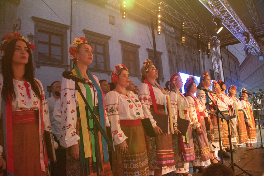 Koncert pre Ukrajinu otvorí Spevácky zbor Charkivského národného akademického divadla, opery a baletu. Od začiatku ruskej agresie sa Charkiv stal mestom v prvej frontovej línii, ktoré bolo denne vystavené bombardovaniu. Preto je tento najstarší ukrajinský súbor rozdelený. Tí, ktorí zostali v Charkive, vystupujú v protileteckých krytoch a na malých koncertných miestach. Hlavná časť súboru spolu s rodinami ale žije v Gabčíkove na Slovensku, odkiaľ cestujú po celej Európe a vystupujú v rámci turné s názvom „Európska cesta“. Ich cieľom je vyzývať občanov EÚ k jednote podpore Ukrajiny a zabezpečiť prezentáciu a uznanie svojej krajiny na kultúrnej mape sveta. Od apríla 2022 už takto odohrali takmer tristo koncertov.