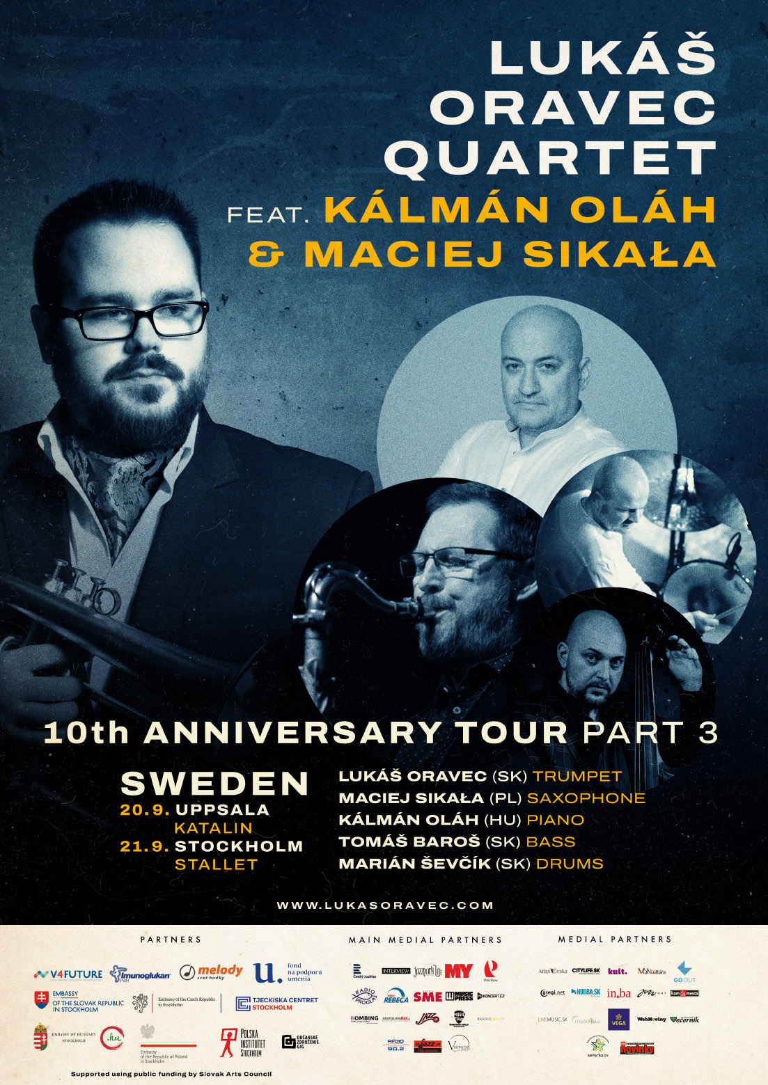 Pokračovanie koncertného turné Lukáš Oravec Quartetu pokračuje koncertami vo Švédsku. Tentokrát na koncertoch v Štockholme a Uppsale predstaví vyšehradskú zostavu. Okrem členov zoskupenia, českého kontrabasistu Tomáša Baroša a slovenského bubeníka Mariána Ševčíka, sa na koncertoch predstavia dvaja špeciálny hostia, maďarský pianista Kálmán Oláh a poľský saxofonista Maciej Sikała.