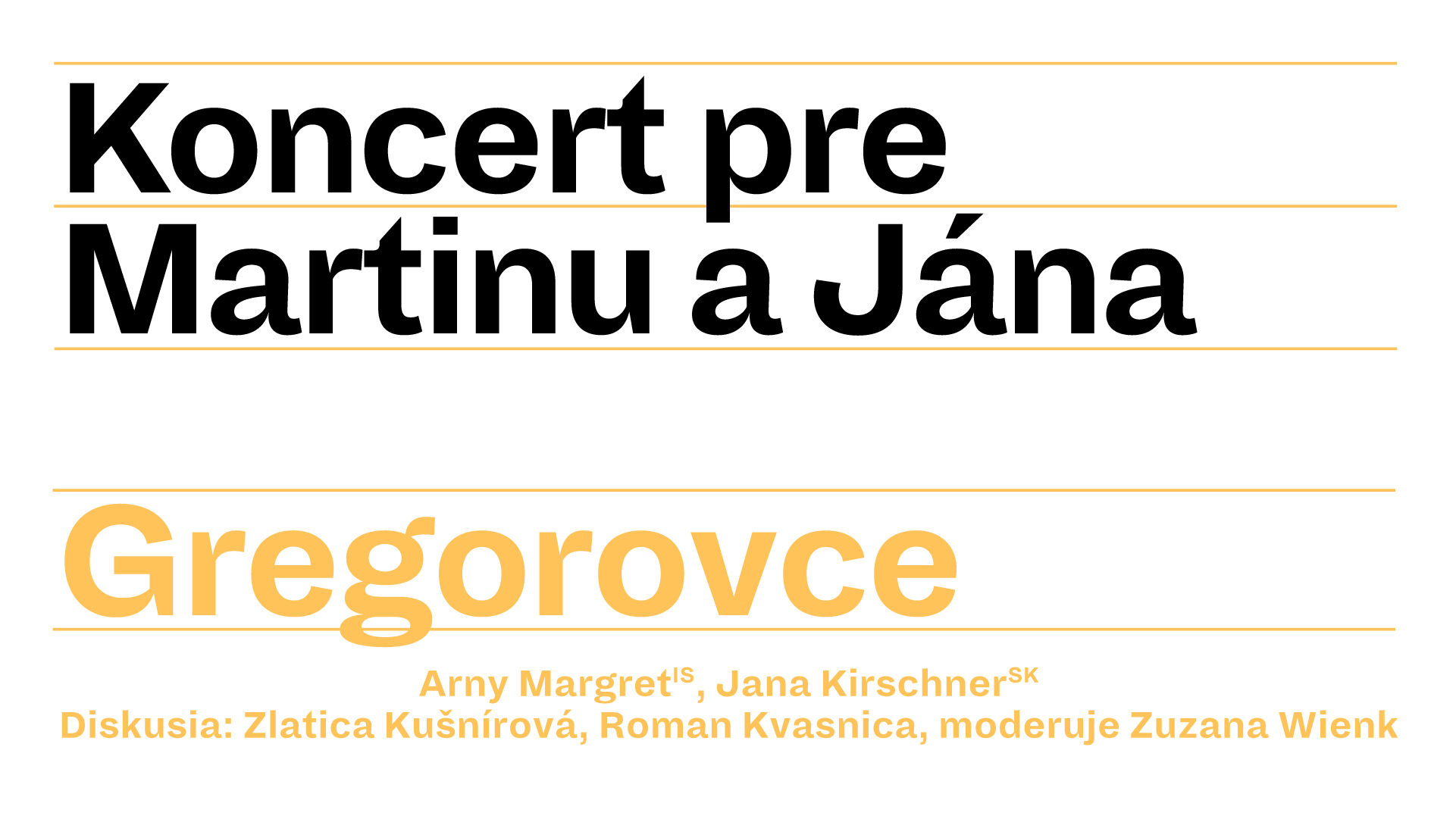 Aj tento rok festival Pohoda v spolupráci s obcou Gregorovce prinesie Koncert pre Martinu a Jána, ktorý sa uskutoční v sobotu 6. mája v areáli Základnej školy v Gregorovciach. Koncert otvorí talentovaná indie-folková pesničkárka Arny Margret z Islandu a vystúpi aj jedna z najúspešnejších a najobľúbenejších slovenských speváčok Jana Kirschner.