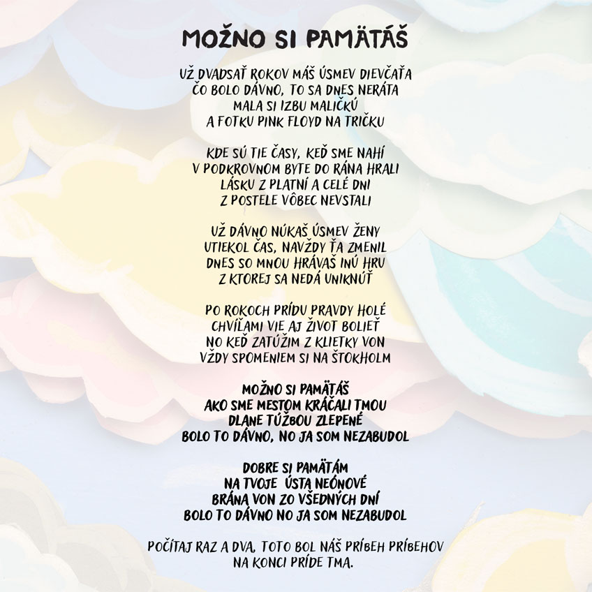 „Na začiatku bol nápad – gitarový riff a dobrý Fefeho text, s ktorým som sa hneď stotožnil. Potom prišli sláky a dychy od Sláva Solovica a zrazu sa objavili zimomriavky. A tie prichádzajú zakaždým, keď skladbu spolu hráme,“ doplnil Šarkan.