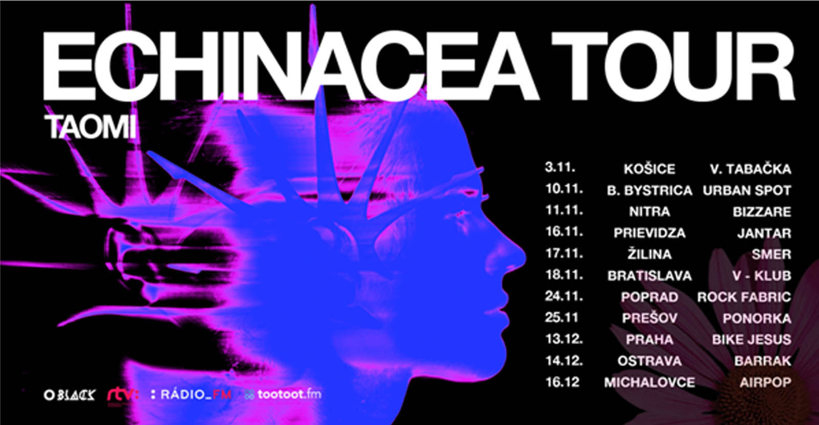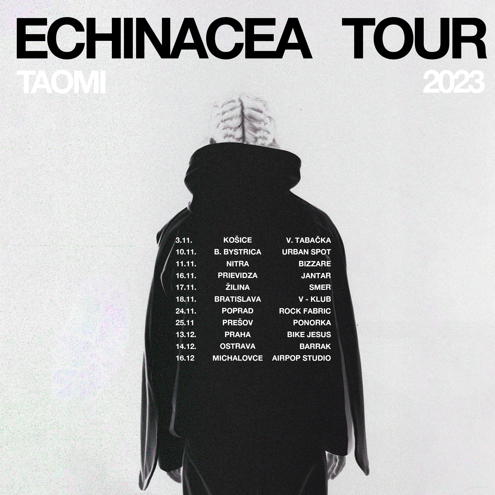 V máji tohto roka vydal Taomi album Echinacea, ktorým odštartoval novú etapu svojej hudobnej tvorby. Energický a multižánrový hudobný projekt už fanúšikom stihol niekoľkokrát v skrátenej verzii odprezentovať na letných koncertoch a festivaloch. Tentokrát sa ho chystá predstaviť v komornejšej atmosfére v priestoroch koncertných hál naprieč Slovenskom a Českou republikou.