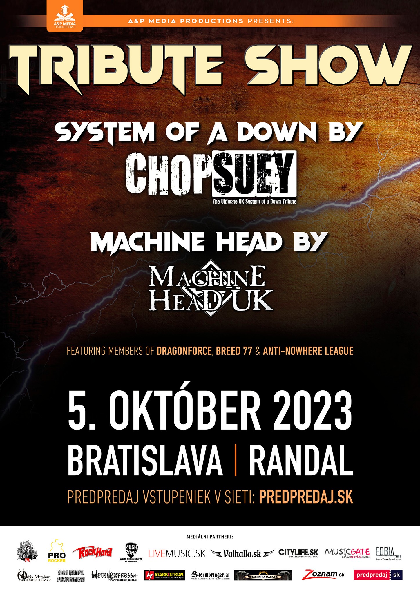 Na Slovensko zavíta v októbri 2023 britská kapela CHOP SUEY, ktorá vzdáva hold kultovej americkej kapele System of a Down, ktorá už veľa rokov hrá najväčšie hity tejto obrovskej legendy.