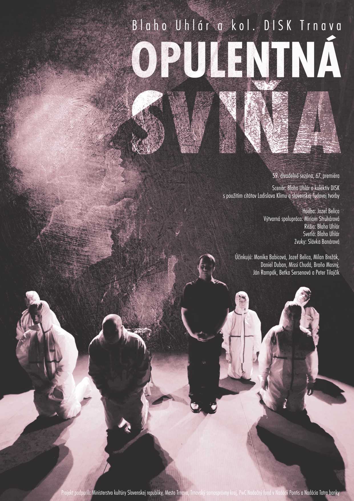 Vo svojej päťdesiatej deviatej sezóne divadelný súbor DISK Trnava stavia opäť na kvalitných hereckých výkonoch, na paradoxnom pohľade na svet, kde sa vulgárne mieša s krásnym, tragické s komickým a groteskným. Opulentná sviňa je významový nezmysel, pretože tento prívlastok ťažko možno priradiť k životnému podstatnému menu. Zároveň je kontradiktické hovoriť o opulentnosti v súvislosti s ochotníckym divadlom, ktoré historicky stavia primárne na nehmotných hodnotách.
