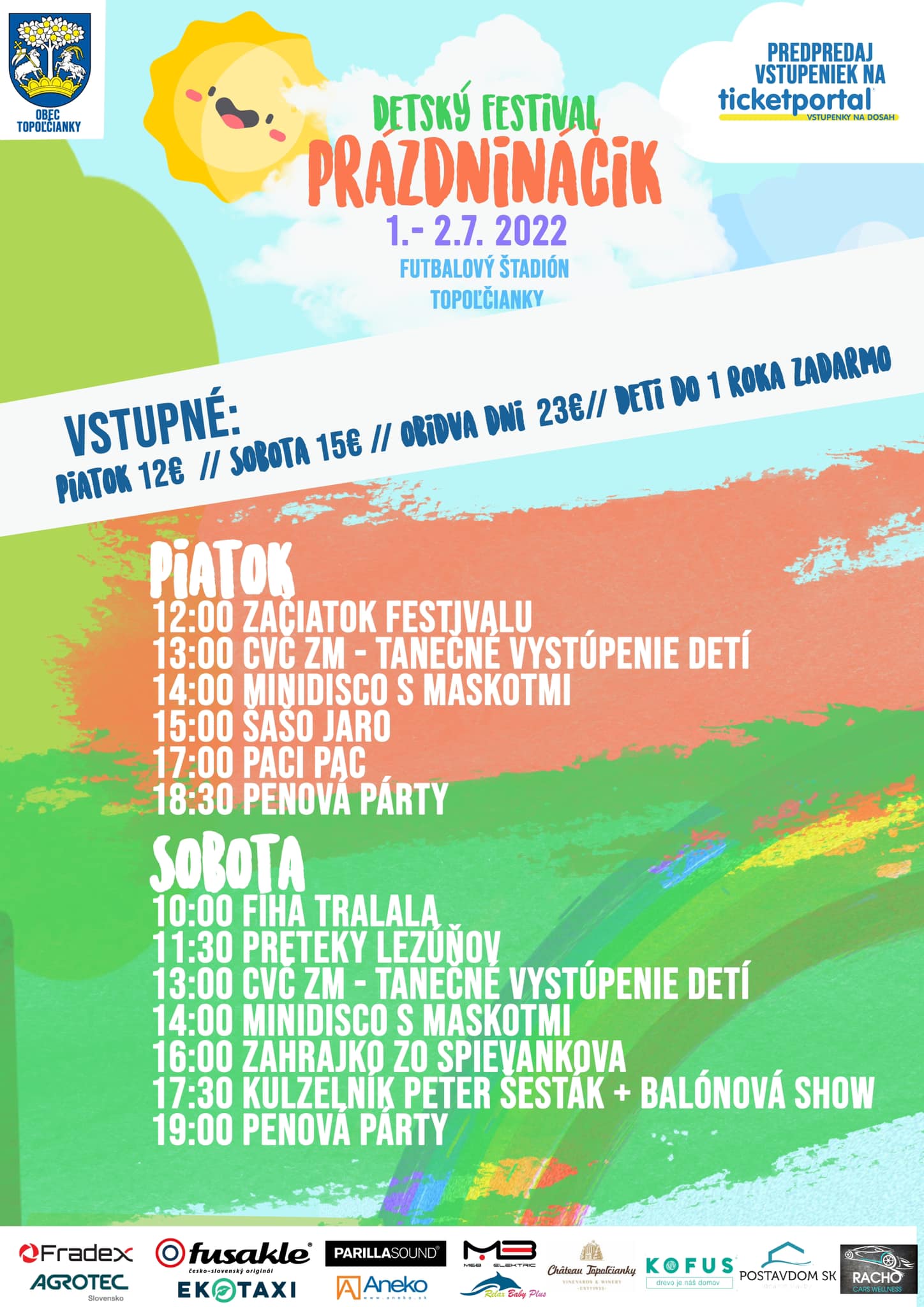 Pre detičky je nachystaný bohatý program ako FÍHA tralala, PACI PAC, Zajrajko, Kúzelník Peter Šesták a Šašo Jaro.