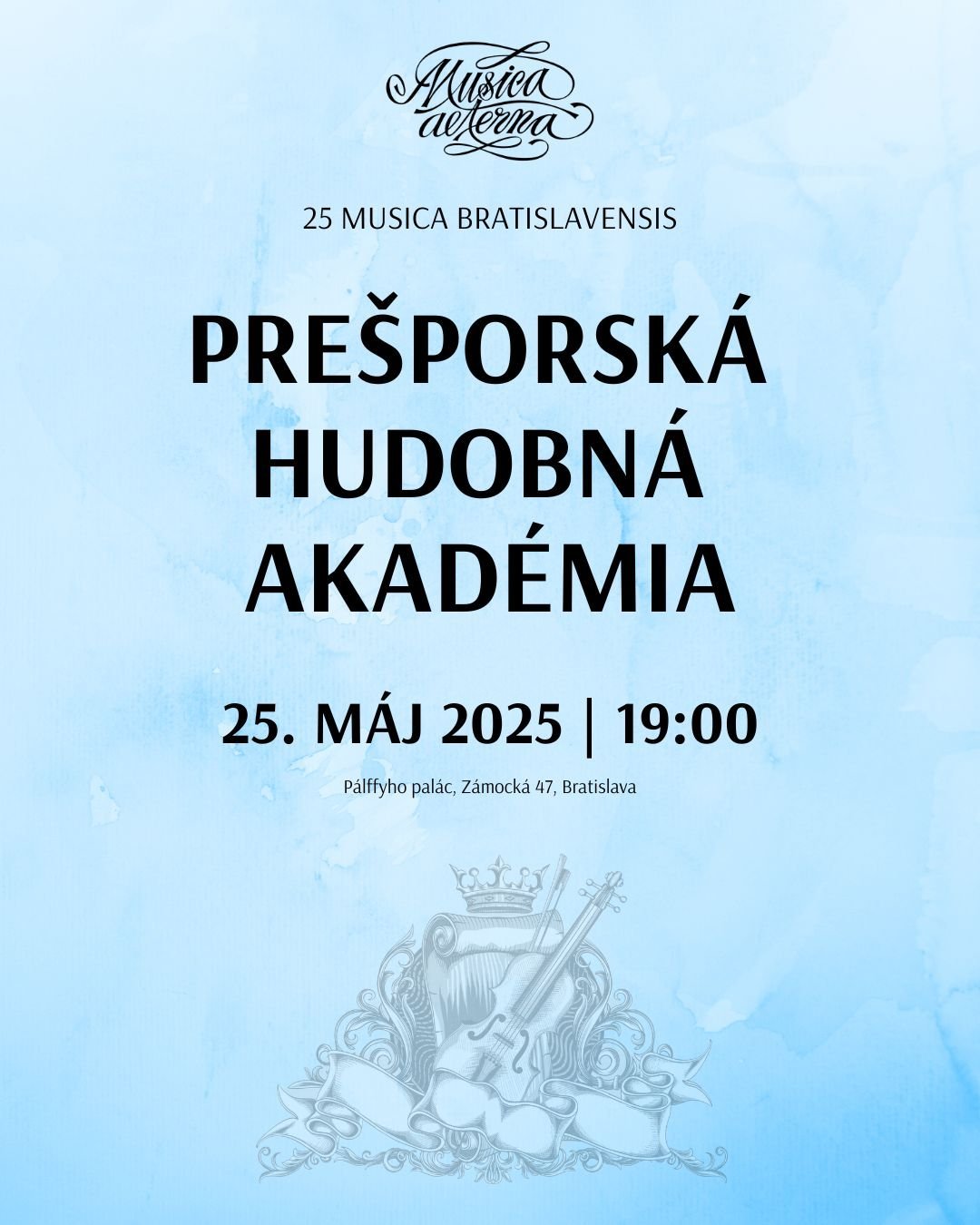 Prvým koncertom s názvom Prešporská hudobná akadémia sa v nedeľu 25. mája 2025 o 19:00 v priestoroch Pálffyho paláca otvorí hudobný cyklus 25 MUSICA BRATISLAVENSIS, koncert bude venovaný hudobnému odkazu klasicizmu – obdobia neoddeliteľne spätého s dejinami Bratislavy.