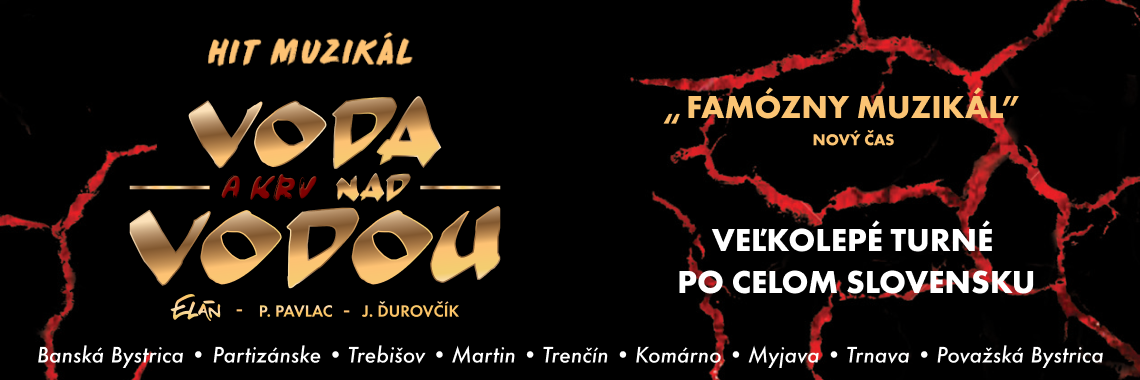 Po najúspešnejšom slovenskom muzikáli všetkých čias Ôsmom svetadiele prichádza na Slovensko už druhý muzikál so slávnymi piesňami legendárnej skupiny Elán - VODA a krv NAD VODOU.