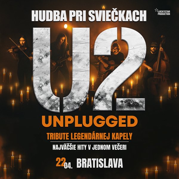 Na koncerte "U2 Unplugged Pri Sviečkach" si vám dovoľujeme predstaviť tribute kapelu, ktorá vás prenesie do atmosféry legendárnej skupiny U2.