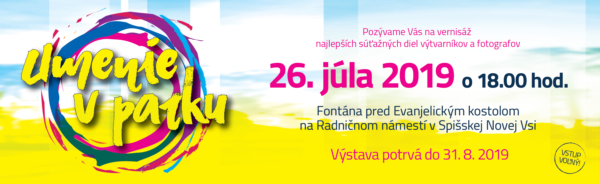 Aj tento rok rozkvitne centrum Spišskej Novej Vsi umením. Umenie v parku vytvorí priestor pre 39 neprofesionálnych autorov, z toho 25 výtvarníkov a 13 fotografov. Vernisáž prinesie okrem krásnych diel aj koncert Novoveskej kapely Star Band a zahrať príde aj dvojnásobný majster Slovenska v hraní na klasickej gitare, Dávid Bílek. Vernisáž sa uskutoční 26.7.2019 o 18:00 v parku pri fontáne v Spišskej Novej Vsi.