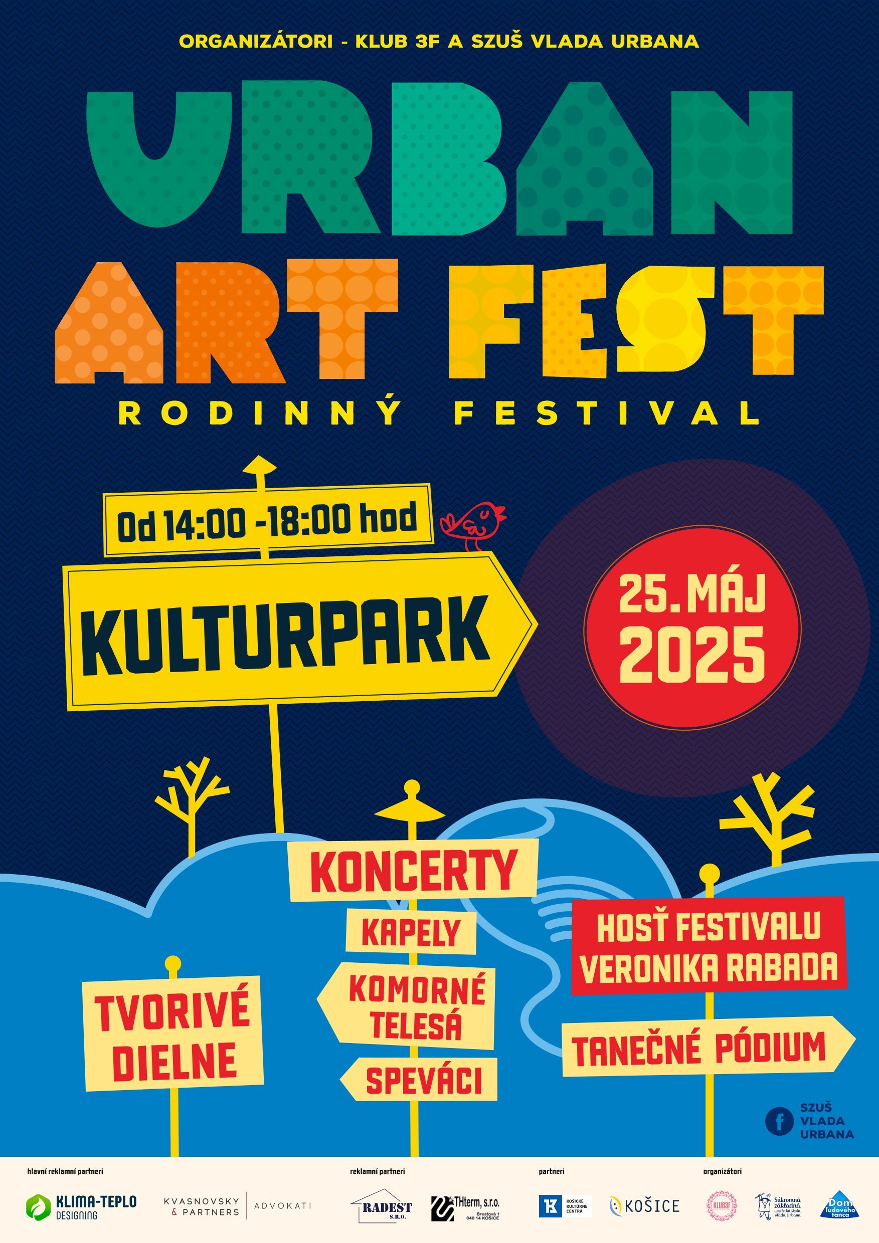 8.ročník obľúbeného rodinného festivalu URBAN ART FEST privíta 25. mája 2025 v priestoroch Kulturparku malých aj veľkých nadšencov voľného času stráveného s rodinou, priateľmi a známymi. Poslednú májovú nedeľu bude čas od 14.00 h do 18.00 h patriť hudbe, tancu, hrám a zábavkám pre deti aj dospelých.