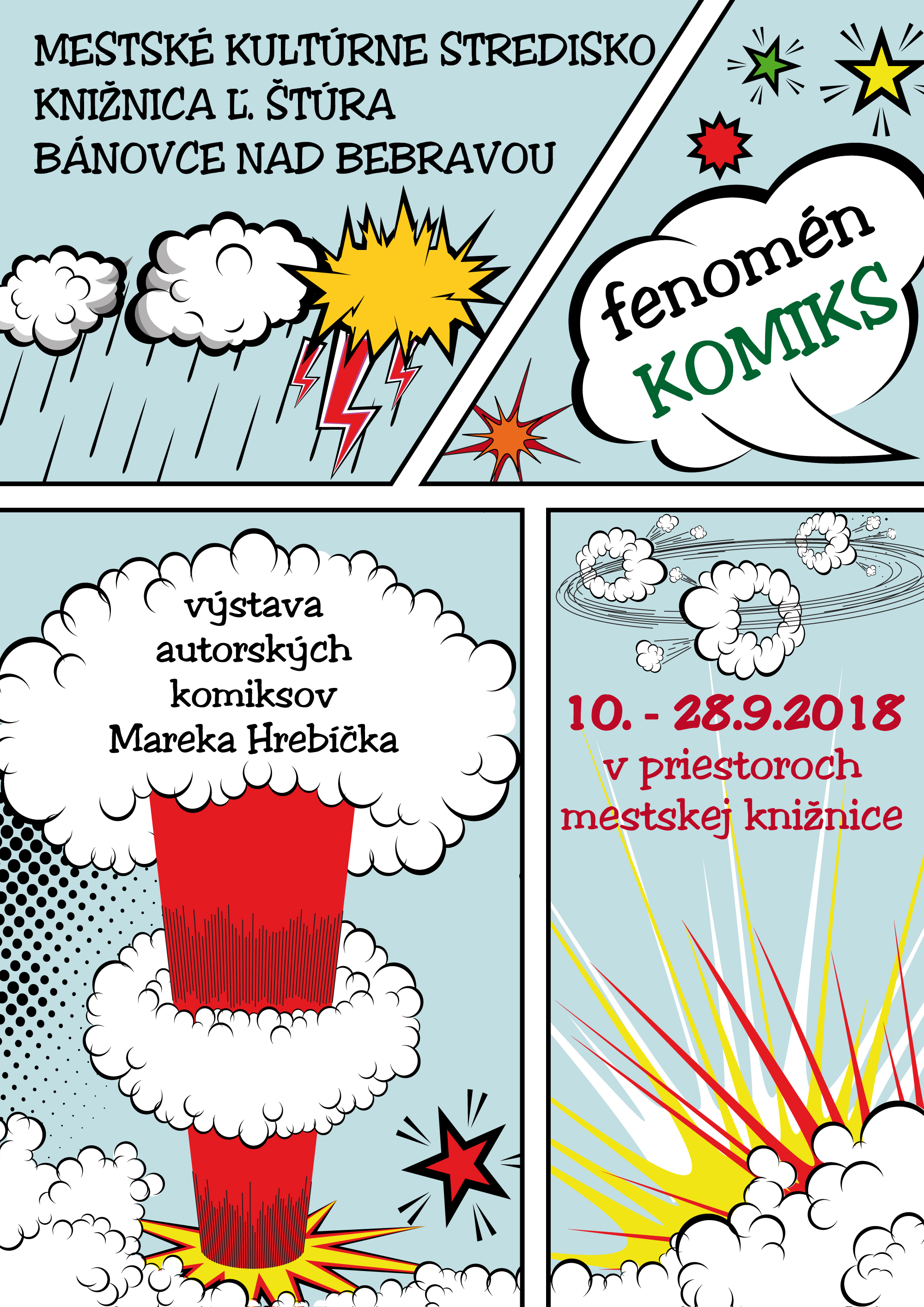 Mestské kultúrne stredisko a Knižnica Ľ. Štúra vás v septembri pozývajú na netradičnú výstavu do priestorov mestskej knižnice. Svoje autorské komiksy predstaví Marek Hrebíček. Výstava je otvorená od 10. do 28.septembra 2018 v čase otváracích hodín knižnice.]]>