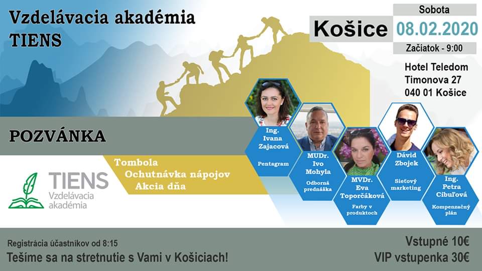 - 13:30 h. VIP Tombola – v cene vstupenky za 30 Euro (budú sa losovať 3 hodnotné produkty/prístroje TIENS)