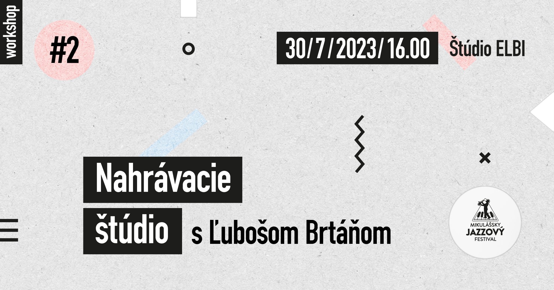 Workshop sa uskutoční v štúdiu Ľuboša Brtáňa v centre mesta. Kapacita je obmedzená. Zaregistrovať sa s vašimi kontaktnými údajmi môžete emailom na info@mjf.sk, alebo zaslaním správy na Facebooku - Mikulášsky Jazzový Festival. Držitelia festivalových permanentiek a jednodňových lístkov budú uprednostnení. Vstup je voľný. Stretneme sa o 15:55 v Uličke medzi kaviarňou Aurelica a AB-C štúdiom tu: https://goo.gl/maps/6KwLCtbf3ZSm9n8D6.