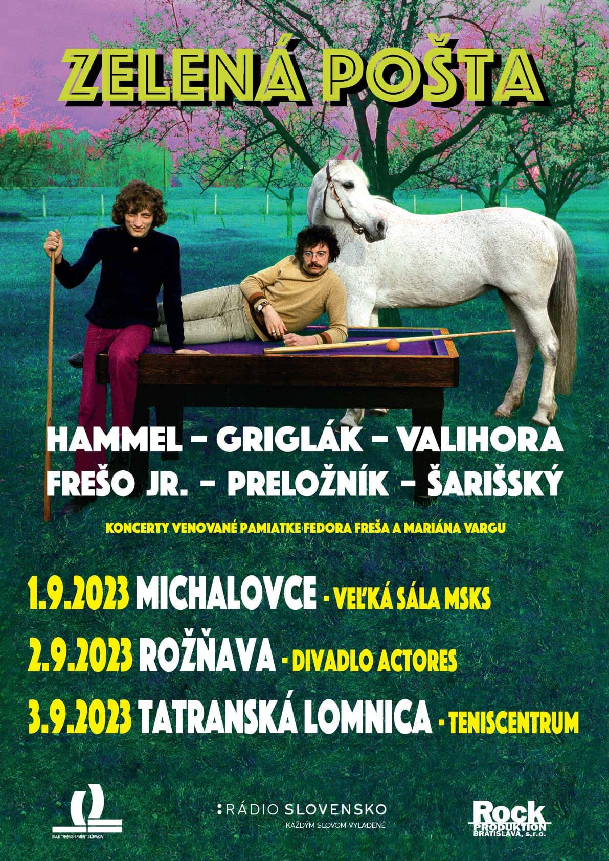 Fanúšikovia Pavla Hammela a Zelenej pošty majú poslednú šancu užiť si tento legendárny album v koncertnom prevedení už onedlho v piatok 1.septembra v Michalovciach, v sobotu 2. septembra v Rožňave a v nedeľu 3. septembra v Tatranskej Lomnici. Na pódiu okrem Pavla Hammela uvidíte Fera Grigláka, Martina Valihoru, Fedora Freša jr., Vladislava „Slnko“ Šarišského a Petra Preložníka.