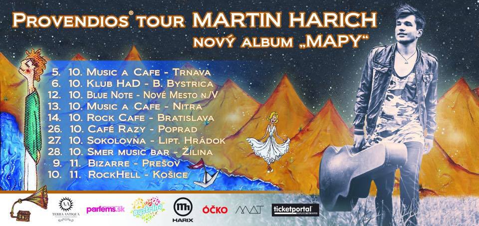 Martin Harich vyráža na slovenské klubové turné, aby predstavil svoj nový štúdiový album Mapy. Nepremeškajte možnosť vychutnať si atmosféru koncertu s nezameniteľnou energiou jedného z najúspešnejších pesničkárov súčasnej slovenskej pop-music.