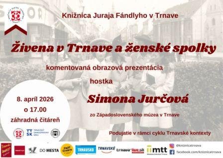 Pozývame vás na komentovanú obrazovú prezentáciu PaedDr. Simony Jurčovej zo Západoslovenského múzea v Trnave, ktorá si tentokrát pre fanúšikov histórie pripravila prehľad o trnavských ženských spolkoch od druhej polovice 19. storočia až do polovice 20. storočia.
