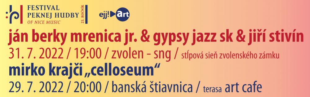 - 31. 07. 2022 o 19:00│Ján Berky MRENICA jr. & Gypsy Jazz & Jiří STIVÍN │>> VSTUPENKY <<
