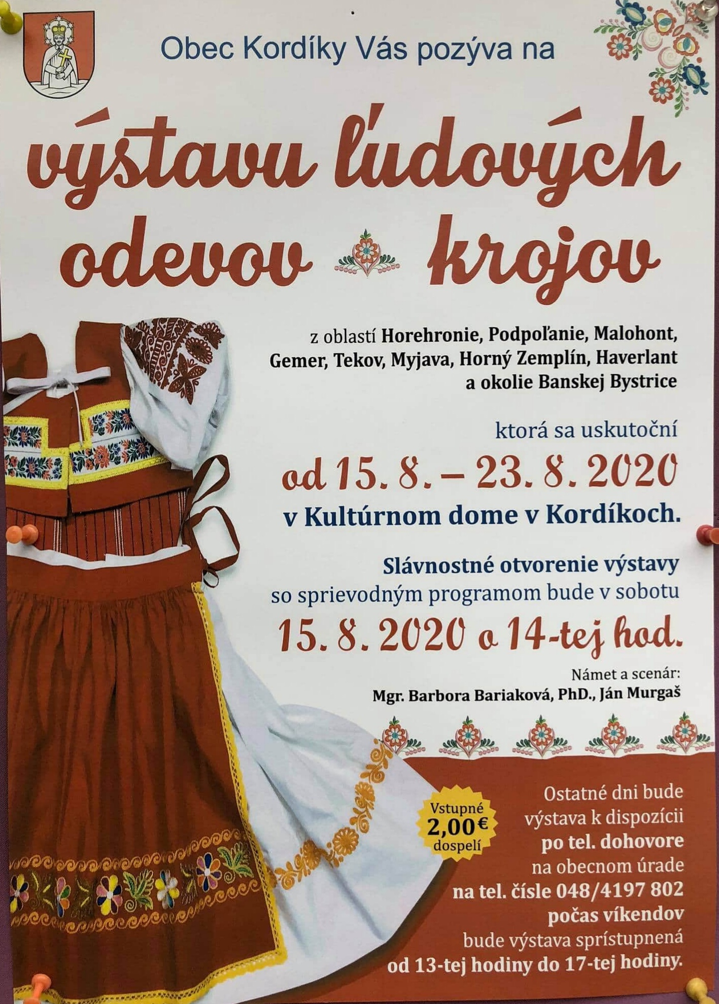 Obec Kordíky v spolupráci so Stredoslovenským múzeom Vás pozýva na výstavu ľudových odevov z rôznych oblastí Slovenska. Slávnostné otvorenie so sprievodným programom bude 15.8.2020 o 14:00 v priestoroch Kultúrneho domu. Komentovaná prehliadka s etnologičkou sa uskutoční 22.8.2020 o 14:00. Všetci ste srdečne vítaní!]]>